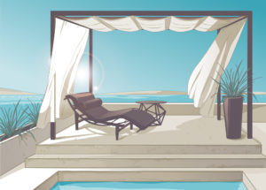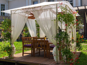 Le gazebo est une sorte de maisonnette ouverte dont le toit permet de se protéger du soleil et de la chaleur. Outre l’aluminium, ce pavillon de jardin peut être en bois ou en bambou. Disponible dans différentes formes telles que circulaire ou hexagonale, il peut servir d’espace de détente, d’abri pour un spa ou encore de support pour les plantes grimpantes. Son prix hors pose est très variable, de 200 à 10 000 euros, en fonction de ses dimensions et de ses options.
